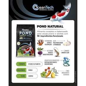 Ração OceanTech Pond Natural Sticks 200g - Alimento Premium Natural para Carpas e Peixes de Lago - melhora a imunidade, realça as cores e garante crescimento mais saudável Validade: Produto com validade longa Fabricado no Brasil A OceanTech Pond Natural Sticks é uma ração completa e natural, especialmente formulada para carpas e peixes de lago em todas as fases da vida. Seus sticks flutuantes são produzidos com ingredientes premium, livres de corantes e conservantes artificiais, garantindo uma alimentação saudável e segura. Benefícios e caracterítiscas da ração OceanTech Pond Natural Sticks: Ração premium para carpas e peixes de lago O melhor custo x benefício e a mais segura para seu lago Alto teor de proteínas de fácil digestão Enriquecida com vitaminas, aminoácidos, minerais, prebióticos e probióticos Carotenoides naturais que intensificam as cores dos peixes Promove crescimento saudável e reforça o sistema imunológico Não turva a água Realça a cor natural do peixes Ingredientes de alta qualidade Rico em vitaminas e minerais Fonte de ácidos graxos Fortalece o sistema imunológico Alta palatabilidade Alta digestibilidade Fornece alimentação completa e equilibrada Formulação probióticos, alho e óleos essenciais garantindo uma melhor Imunidade, bem-estar e saúde garantida para seus peixes Estimula a curiosidade e o apetite, com baixa densidade garantindo uma maior flutuabilidade. Compre com segurança nesse anúncio: Mega Aquários, um revendedor oficial OceanTech Mais de 20 anos de experiência atuando em e-commerce de qualidade e procedência Especificações: Marca: OceanTech Modelo: Pond Natural Sticks Peso: 200g Tipo: Alimento completo para carpas e peixes de lago Comportamento: Sticks flutuantes que facilitam a alimentação e reduzem resíduos na água Formato: Sticks flutuantes Como alimentar corretamente os peixes de lago com a ração OceanTech Pond Natural Sticks: Ofereça a ração de duas a três vezes ao dia, em quantidade que seja consumida completamente em poucos minutos. Evite excessos para manter a qualidade da água do lago. Peixes Indicados: Ideal para carpas jovens e adultas, bem como outros peixes de lago que se beneficiem de uma dieta rica em nutrientes naturais. Obrigado pela visita e boas compras: ATENÇÃO Imagens e textos registrados. Todos os direitos reservados a essa loja e as lojas parceiras devidamente autorizadas. Marca: Não Informado Ean: 7795510461290