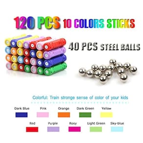 Magnetic Construction Set é uma coleção de varetas magnéticas e s de aço que podem ser s para criar formas variadas e modelos 3D coloridos.