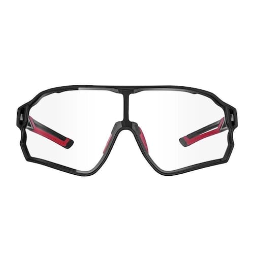 Óculos com formato anatômico e ajuste perfeito no rosto, design ultramoderno e proposta arrojada, com lente fotocromática e clip para lentes de grau. -marca: RockBros -modelo: RB-10135 -cor: Preto com detalhes vermelho -material das lentes: policarbonato -tratamento UV400 -acompanha: clip para lentes de grau + estojo case + flanelinha de limpeza
