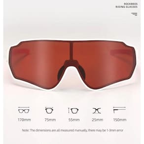 Os óculos de ciclismo Rockbros possuem armação em grilamid tr-90, um material resistente e leve, com tecnologia suíça. As lentes são feitas de policarbonato PC , que oferece proteção contra raios ultravioletas.
