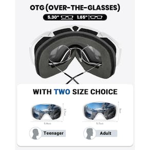 OutdoorMaster Óculos de esqui com capa Snowboard Snow Goggles OTG Antiembaçamento para homens e mulheres, A02 VLT 9,5% - Capa protetora de óculos de esqui: vem com a capa ideal para proteger suas lentes de óculos de arranhões, danos e poeira. A capa elástica extra longa para compatibilidade com qualquer óculos. Sem necessidade de montagem, fácil de colocar e tirar, útil para limpar a neve ou o gelo - Confortável e ventilação: a armação dos óculos de esqui usa o mais alto grau de espuma de camada tripla e moldura de TPU premium, feita de material de polímero de uretano termoplástico super durável com um revestimento antiderrapante de toque macio premium. Fornece um sistema de fluxo de ar suave que traz ar fresco e umidade de exaustão de forma rápida e eficaz - Proteção UV: Lentes de tratamento anti-embaciamento otimizadas e 100% de proteção UV proporcionam uma experiência de esqui sem neblina. A tecnologia de lente de camada dupla cria uma barreira térmica que minimiza o acúmulo de umidade, oferece uma visão verdadeiramente desobstruída e clara das encostas - Compatível com capacete e OTG: Estes óculos projetados com alça extra longa e adiustável para melhor compatibilidade com o capacete, oferecem um ajuste confortável e seguro. Óculos de esqui e snowboard projetados sobre o vidro para óculos de tamanho pequeno a médio - Adequado para adultos: Feito para esquiadores e snowboarders adultos, estes óculos combinam durabilidade e desempenho. O design ergonômico se encaixa confortavelmente em uma ampla variedade de formatos de rosto, tornando-os ideais para homens e mulheres que procuram óculos confiáveis e de alto desempenho