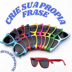 Você tambem pode personalizar sua frase da sua escolha Material e MedidasMaterial 100% antialergênico,Uso indicado para crianças de 2 a 8 anos,Estilo: QuadradoMaterial das lentes: AcrílicoAltura da lente: 4 cmMedida frontal: 12,5 cmComprimento das hastes: 12,5 cm