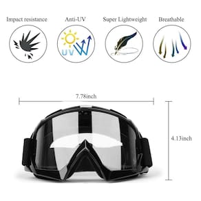 XYOP Óculos profissionais de motocicleta, motocross, para homens, mulheres, quadriciclos, à prova de vento, lentes transparentes - ?Várias aplicações?motocicletas, motocross, ATV, BMX, MX, corrida, veículos off-road, mountain bikes, cross-country, esqui, esportes ao ar livre, ciclismo, kitesurf, jet ski, almofadas de ar, paintball, snowboard, etc. É muito adequado para capacetes de motocicleta devido ao design da estrutura e alça de ombro ajustável super longa. - ?Material macio e dobrável?A armação de TPU de alta qualidade faz com que nossos óculos de ciclismo tenham excelente resistência e elasticidade. A lente de policarbonato tem anti-embaciamento, anti-arranhões, à prova de vento, poeira e super resistência a impactos para proteger seus olhos em qualquer esporte ao ar livre. - ?Alça ajustável para óculos?A alça de óculos ajustável larga antiderrapante e elástica pode ser aplicada na maioria dos capacetes e na maioria dos tamanhos de cabeças, muito adequada para usar os óculos no capacete com firmeza. - ?Confortável de usar?Estes óculos de corrida são preenchidos com esponja macia ao redor da armação, que é confortável de usar e ajuda a dissipar o calor e evitar embaçamento. Permite que você o use confortavelmente e proteja seus olhos em qualquer esporte ao ar livre. - ?Melhor presente?Este óculos ATV pesa apenas 140 g e a armação pode ser dobrada. Leve e fácil de transportar e guardar. Também é muito adequado como presente de Natal.