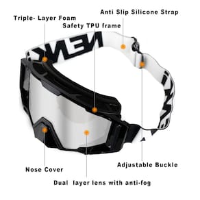 Óculos de motocross com cobertura de nariz MX óculos ATV off-road Dirt Bike óculos para adultos unissex - Os óculos de ciclismo de motocross são projetados com uma capa de nariz removível, que pode proteger seu nariz em esportes ao ar livre; e os óculos de motocross são adequados para andar de motocicleta, motocross, bicicleta suja, off-road, dirigir, ciclismo, country cross, escalada, jet ski, snowboard, kitesurf, ATV, BMX e outros esportes ao ar livre. - Os óculos de motocicleta adotam tecnologia avançada de lentes, as lentes são antiembaçamento e os óculos têm design de ventilação na espuma superior e inferior, que ajuda a expelir o calor interno e manter a circulação de ar interna, evita embaçamento e fornece uma visão clara. - Os óculos Dirtbike são projetados com 3 tiras de silicone ao redor da alça larga, que é antiderrapante para proporcionar uma boa aderência ao capacete, e os óculos de motocross são projetados com fivelas duplas ajustáveis, que podem ser ajustadas para caber bem no capacete ou no tamanho da sua cabeça, compatíveis com a maioria dos capacetes, adequados para adultos. - Os óculos de motocicleta adotam armação de TPU de qualidade e lentes de policarbonato, resistentes e seguras, protegem seus olhos dos raios UV; e a armação e as lentes têm alta resistência e resiliência, podem ser dobradas, não quebram facilmente quando oprimidas, muito fáceis de transportar; além disso, as lentes são convenientes para você instalar o escudo protetor, proteja sua lente de arranhões após o uso. - Camadas triplas de espuma: os óculos de atv para homens são preenchidos com camadas triplas de espuma ao redor da armação, que é macio e confortável de usar, e não machuca seu rosto depois de usar por um longo tempo, e pode manter seus olhos longe de vento forte, poeira suja, neve espessa e luz solar brilhante; Além disso, você pode usar seus próprios óculos míopes sob os óculos de motocross.
