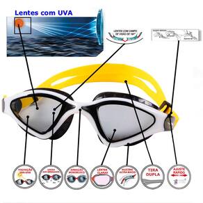 O Óculos de Natação Gold Sports Shark Performance 7.0 High Definition são projetados para atender às necessidades dos nadadores profissionais, com uma tecnologia anti-neblina inovadora que garante uma visão clara, mesmo nas condições mais desafiadoras. Equipado com lentes de grande angular, anti-fog e de alta definição: Mergulhe em águas cristalinas com a ajuda de nossa grande angular, anti-fog, e lentes de alta definição que proporcionam uma experiência subaquática nítida e imersiva. Ajuste confortável: Os óculos são criados com um material de silicone macio e durável que se encaixa confortavelmente ao redor dos olhos sem causar irritação ou desconforto, permitindo que você nade por horas. Armação e tira em silicone liquido de ultima geração ultra confortável e capaz de se adaptar a qualquer formato de rosto. Pode ser facilmente ajustado.Nossos óculos de natação apresentam um design elegante e moderno que é certo para virar a cabeça na piscina. Com uma escolha de cores elegantes e um ajuste de perfil baixo, você vai olhar e se sentir bem como você deslizar através da água. Uso versátil. Nossos óculos de natação são perfeitos para uma variedade de atividades aquáticas, incluindo natação, mergulho, Triatlo e muito mais. Se você é um iniciante ou um profissional experiente, nossos óculos são projetados para atender às suas necessidades e ajudá-lo a executar o seu melhor. Suas lentes são transparente muito confortavel para picinas fechadass, suas lentes são confeccionadas em policarbonato de ultima geração proporcionando uma visão HD, lentes com duas camadas anti-fog, proteção UVA e UVB400, armação em em silicone liquido ultra soft, tiras duplas em silicone ultra soft com ajuste rápido.