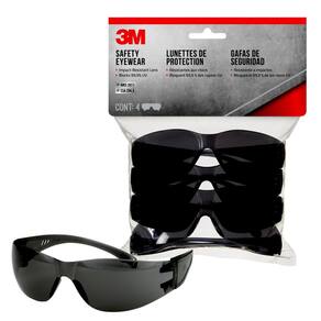 3M Óculos de segurança, pacote com 4, lentes resistentes a impactos, bloqueia 99,9% do revestimento UV, resistente a arranhões, design contornado, lentes cinza ajudam a reduzir a luz solar, óculos de