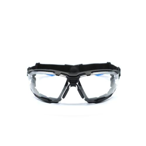 — ANSI Z87.1 e EN 166 — Lente transparente antiembaçante e antiarranhões — Junta protetora removível — Faixa de cabeça ajustável — Almofadas nasais ajustáveis de TPR