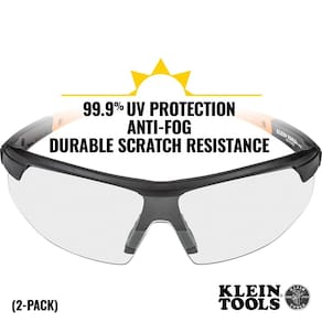 Klein Tools Óculos de segurança 60171, óculos de proteção EPI com semi armação, resistente a arranhões e antiembaçamento, lentes transparentes, pacote com 2 - Lentes estreitas de perfil baixo: óculos de segurança com um design de lente estreita de perfil baixo que combina perfeitamente com o seu rosto para maior proteção - Proteção superior contra impactos: atende aos padrões ANSI Z87.1+, CSA Z94.3 e MIL-PRF-32432A para resistência superior a impactos - Lentes resistentes a arranhões: Lentes transparentes especialmente tratadas oferecem maior durabilidade, tornando-as ideais para locais de trabalho exigentes - Antiembaçamento de longa duração: revestimento antiembaçamento durável que não se desgasta, garantindo uma visão clara mesmo quando utilizado com máscaras antipoeira - Proteção UV EFICAZ: Testado de acordo com o padrão ANSI Z87.1 U6, bloqueando 99,9% dos raios UV prejudiciais para proteção ocular abrangente - Visão cristalina: lente de policarbonato transparente de alta qualidade com distorção mínima garante uma visão sem comprometimento - Ajuste confortável e seguro: materiais leves e flexíveis, nariz de borracha e pontas das hastes para conforto a longo prazo e aderência segura. Este é um pacote com 2