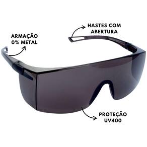 Os óculos de proteção sky combinam estilo e segurança. Sua armação isenta de partes metálicas possibilita o uso em trabalhos com eletricidade. Suas hastes tipo espátula com abertura na ponta permitem a colocação de cordão. Oferecem proteção: UV400 que filtram 99,9% dos raios UVA/UVB até 380 nm, alto impacto e lateral.