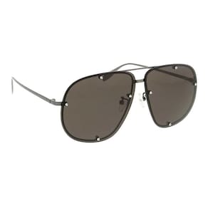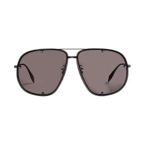 Fazendo referência ao legado punk característico de Alexander McQueen, Stud Structure incorpora a liberdade de expressão e o espírito rebelde da marca. Design feminino de aviador com construção metálica combinada com lentes extraordinárias que se projetam da visível e são fixadas por pequenos pinos com pontas. O logotipo Alexander McQueen está gravado a laser nas hastes. A paleta de cores inclui combinações de cores unissex com lentes gradientes e sólidas. Os tachas metálicas estão em sintonia com as cores metálicas e brilhantes da moldura. Proteção UV 400; Dobradiça óptica de alta qualidade; em metal ródio negro ; Lentes de policarbonato resistentes a arranhões; Incluí pano de limpeza e estojo rígido. Medidas: Frontal: 140mm x 64 mm Haste: Metal Modelo: Aviador Cor da lente: Preto : Preto