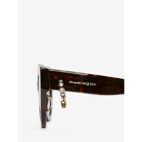 Óculos de sol em acetato havana brilhantes com lentes marrom degradê. Os óculos de sol têm formato redondo e são enriquecidos com um pingente de caveira em ambas as hastes em ouro antigo com enfeites de cristal. Proteção UV 400; Dobradiça óptica de alta qualidade; em acetato; Lentes em nylon resistentes a arranhões; Incluí pano de limpeza e estojo rígido. Medidas: Frontal: 145mm x 50 mm Haste: Acetato Modelo: Redondo Cor da lente: Marrom : Tortoise / Havana Marca: Não Informado Ean: 8056376455526