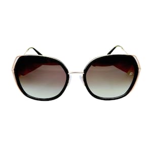 Óculos de sol ana hickmann ah90010 a01 Lentes preto degradê de policarbonato resistente a arranhões. Dobradiças e materiais ópticos de aço inoxidável.Armação e hastes moldáveis/ajustáveis metal /acetato .Acompanha flanela autoral e hard case para você cuidar do seu óculos. Dimensões: Lentes: 4,5 cm Ponte entre as lentes: 1,0 cm Hastes: 13,2 cmAltura:15cm