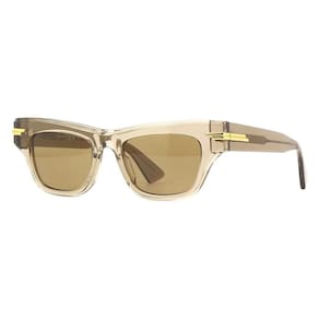 Os óculos de sol Bottega Veneta BV1122S-006 com uma de acetato champanhe translúcida e lentes em tom de marrom. Perfeito para deixar o seu look moderno. destaque para a marcação em tiras douradas que representam o couro do INTRECCIATO BOTTEGA. Medidas: Frontal: 145 mm x 51mm Haste: 145mm Ponte: 19mm Cor da lente: Marrom 100% de proteção UV400 Tamanho 51 no caramelo translúcido e lente marrom cosmética. Guardar seus óculos dentro do respectivo Estojo, sempre que não estiver usando-o; Não deixá-lo exposto a altas temperaturas, Principalmente sobre painéis de Automóveis; Limpar as lentes com a flanela enviada junto com os óculos; Não utilizar nenhum tipo de solvente ou Abrasivo de limpeza. Marca: Não Informado