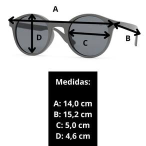 Óculos de Sol Elegatto Redondo Flexível Polarizado UV 400 Cor da : Cinza Cor de Lente: Cinza Polarizada A Elegatto traz para você óculos elegantes, atemporais e confortáveis, daqueles que você não vai querer tirar do rosto Loja Oficial da marca Elegatto. Descrição do Produto: Haste de Nylon Flexível Frente de Nylon Flexível Almofada de Nariz Anatômica Comprimento da Frente: 14,0 cm Comprimento da Haste: 15,2 cm Comprimento da Lente: 5,0 cm Altura da Lente: 4,6 cm Aro Integral Lente Polarizada com Proteção UV 400 Material da Lente: Acrílico Modelo: Elegatto MP0