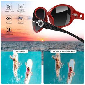 EXCELENTE LENTE POLARIZADA Estes óculos de proteção solar com lentes grandes polarizadas e não reflexivas dão aos seus belos olhos uma ótima proteção solar. Os óculos Joopin de tons polarizados superiores reduzem o brilho, restauram a cor verdadeira, proporcionam uma visão mais clara, aliviam a fadiga ocular. Estes óculos de sol femininos polarizados reais são a melhor escolha para dirigir, fazer compras, tomar banho de sol, pescar, correr, andar de bicicleta, escalar, férias, praia, qualquer atividade ao ar livre.