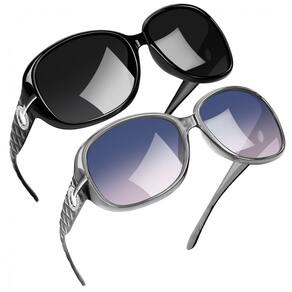 O PACOTE INCLUI Óculos de sol pretos escuros para mulheres x 1, óculos de sol gradiente para mulheres x 1, bolsa requintada x 2, pano de lente x 2, cartão de teste polarizado x 1