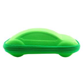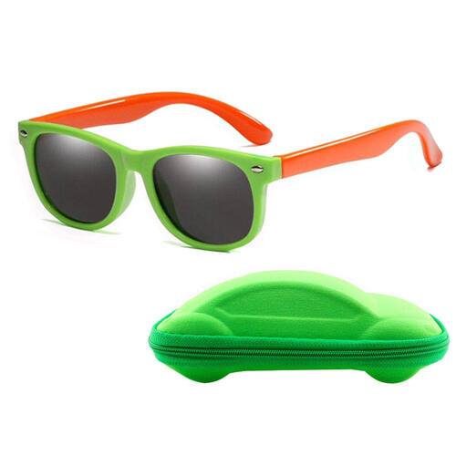 Feito com material de silicone, atóxico e hipoalergênico, confortável e 100% flexível. Lentes polarizadas (acompanha teste de polarização), proteção solar UVA400 e UVB. Modelo unissex. Acompanha divertido estojo em forma de carrinho para manter os óculos protegidos.