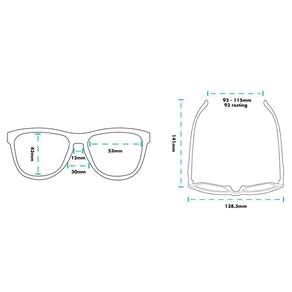 Dimensões: Largura do óculos: 138,5 mm Lentes: 42 mm de altura x 53 mm de largura Hastes: 141 mm