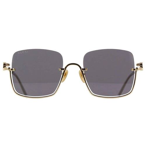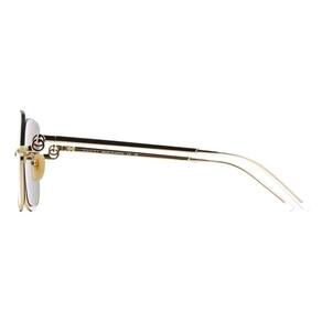Os óculos de sol GG1279S-001 da Gucci apresentam formato quadrado. A em metal dourado com meio aro no formato dos olhos. Nas hastes o GG duplo da grife oferecem um toque sofisticado ao visual. Proteção UV 400; Lente de policarbonato, resistente a arranhões; Dobradiça óptica de alta qualidade; em metal; Incluí pano de limpeza e estojo rígido. Medidas: Frontal: 140 mm x 54 mm Haste: 140mm Cor da lente: Cinza Cor da : Dourado Marca: Não Informado