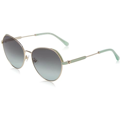 Óculos de sol Kate Spade. Número de série: OCTAVIA/G/S. Código de cor: 0PEF/IB. Forma: Piloto. Largura da lente: 59 mm. Ponte de lente: 17 mm. Comprimento do braço: 140 mm. 100% de proteção UV. Material da estrutura: Metal. Cor da moldura: ouro/verde. Tipo de lente: cinza sombreado em verde. Estilo do aro: aro inteiro. Código UPC/EAN: 716736737287. Óculos de sol femininos Kate Spade Grey Shaded Green Pilot OCTAVIA/G/S 0PEF/IB 59.