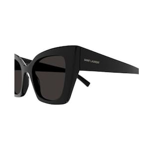 Óculos de sol feminino SAINT LAURENT SL 552/001/51 em formato Oversized. São confeccionados em Acetato robusto na cor preta com lentes na cor preta. Proteção UV 400; Lente de policarbonato, resistente a arranhões; Dobradiça óptica de alta qualidade; em acetato, moldável ao rosto; Incluí pano de limpeza e estojo rígido. Medidas: Frontal: 179 mm x 5,6mm Haste: 140mm Cor da lente: Preto Cor da : Preto Tamanho: 51