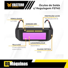 Apresentamos os Óculos de Solda com Regulagem Automática Fasterr FST040 que vão transformar sua experiência de soldagem! Com um filtro de 108 x 50 x 5,5 mm e uma área de visualização de 92 x 30 mm, você terá uma visão clara e ampla do seu trabalho. No estágio claro, a tonalidade é DIN 4, enquanto no estágio escuro é DIN 11, proporcionando a proteção ideal para seus olhos.