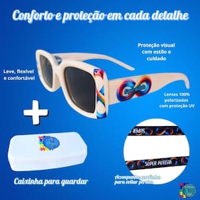 O grande destaque está nas lentes polarizadas com 100% de proteção contra os raios UV, que atuam diretamente na diminuição do impacto da luz solar e do reflexo nos olhos. Isso significa mais nitidez, menos cansaço visual e maior conforto para crianças com hipersensibilidade à luz, algo muito comum entre autistas. Com esses óculos, passeios ao ar livre, idas à escola, terapias ou qualquer atividade externa se tornam muito mais agradáveis e seguras.