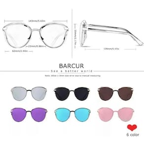 • Lentes polarizadas :Reduz o brilho e aumenta a clareza, tornando mais fácil ver sob a luz solar intensa.• Proteção UVAB :Bloqueia os raios UVA e UVB nocivos, protegendo seus olhos de danos a longo prazo.• Moldura de aço inoxidável :Durável e leve, garantindo que os óculos fiquem no lugar e não sejam arranhados facilmente.• Estilo olho de gato :Um design clássico e intemporal que complementa qualquer roupa.EspecificaçõesCor: ouro preto/marrom.Material da lente: TAC polarizadoQuadro: Aço InoxidávelTemplo: Plástico de alta qualidadeTamanho: Desenho da dimensão de referênciaEstilo: olho de gato elegante redondoGênero: MulheresDica: lente Clearn com pano BARCUREstação: Verão/Outono/Inverno/PrimaveraNúmero de peça: 1Característica1. olho de gato 3D Deisgn2. TAC 1.1MM lente polarizada3. TR90 templos confortáveis Desgaste