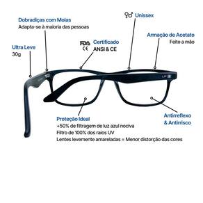 A lp vision transforma a sua experiência com a tecnologia, saúde e bem-estar. Somos a melhor marca brasileira de óculos para telas com mais de 5 anos de experiência, trazendo muita qualidade e inovação. Passamos incontáveis horas na frente de eletrônicos, assim como você. Faça parte dos mais de 5.000 visioners e experimente a diferença. Compre agora e transforme sua experiência digital Nossa missão é simples: cuidar de você enquanto alcança seus objetivos. Escolha um lp vision e transforme sua experiência digital. O óculos para computador que irradia sofisticação, trazendo um toque moderno a um estilo clássico para você que é um usuário digital exigente. A estrutura apresenta um material de acetato premium e dobradiça com molas para se ajustar com fluidez e leveza ao seu rosto com a melhor experiência de visualização. As lentes lp control são projetadas com tecnologia de ponta para reduzir a distorção de cores, proporcionando uma excelente experiência e eliminando os efeitos colaterais da vida digital. Nossas lentes bloqueiam 100% dos raios uv abaixo de 400 nm e reduzem até 57,99% da luz azul no espectro de 400 nm - 450 nm, para que você tenha a certeza de que seus olhos estarão sempre protegidos. O óculos gamer v2 lp vision é projetado para bloquear essa luz azul violeta intensa e prejudicial, relaxando os músculos oculares e reduzindo o brilho proveniente de dispositivos digitais. Isso não apenas melhora o conforto visual, mas também previne a sobrecarga que causa o cansaço visual de forma e segura. Todos óculos lp vision passam por processos rigorosos e cumprem com as mais exigentes normas internacionais de segurança e qualidade: - regulamentos europeus 2016/425 & 2017/745 - norma harmonizada en iso 12312-1:2013 - norma técnica en iso 12312-1:2022 - padrão ansi z80.3:2018 eua - en iso 9001:2015 Desenvolvido pela lp vision. Óculos fabricado na china. Embalagem produzida no brasil. Verificado e embalado no brasil. Com o óculos de proteção para tela lp vision você pode: - aumentar sua energia e foco: Ideal para longas jornadas digitais, os óculos garantem uma experiência visual mais relaxante, minimizando a tensão em seus olhos durante o uso contínuo de dispositivos. - eliminar dores de cabeça: O uso regular dos óculos anti-fadiga pode diminuir as dores de cabeça associadas à fadiga ocular, permitindo que você se concentre melhor nas tarefas diárias. - dormir melhor e com facilidade: Ao reduzir a exposição à luz azul, especialmente à noite, nossos óculos favorecem uma melhor qualidade de sono, ajudando você a descansar de forma mais profunda e revitalizante. Relatório de uso dos óculos lp vision: 100% relataram melhora na facilidade de visualização. 96% relataram redução na fadiga ocular. 99% recomendariam o uso de um óculos lp vision. 90% relataram que seus olhos ficavam menos cansados ao usar um lp vision. 79% disseram que usar óculos lp vision aumentava sua produtividade. Características: - material da : acetato - material das lentes: acrílico - antirreflexo: sim - anti riscos: sim - função: anti fadiga e filtro de luz azul O acetato possui estrutura de placa de memória de plástico de alta tecnologia, com a composição de fibra de acetato e fibra de ácido propiônico. A tecnologia da de acetato inclui tecnologia de montagem e gravação em mosaic. Em sua principais características estão a dureza, alto brilho, leveza, estilo bonito e a cor rica. Guia de medidas Largura frente: 14 cm Largura ponte: 1,9 cm Largura lentes: 5,3 cm Altura lentes: 4 cm Largura haste: 14,5 cm Peso: 30g - é muito leve O que você receberá: - 01 óculos gamer v2 lp vision - 01 estojo para transporte - 01 flanela para limpeza Marca: Não Informado