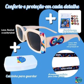 Conheça o poder do conforto visual com os incríveis Óculos Escuros Infinity Cream. Desenvolvidos com foco nas necessidades sensoriais e visuais de crianças autistas, esses óculos foram criados para oferecer mais do que estilo - eles proporcionam alívio, segurança e bem-estar em cada detalhe. São ideais para quem busca proteger os olhos com eficiência, sem abrir mão da leveza, da beleza e da personalidade. Produzidos em nylon flexível, os Óculos Infinity Cream são extremamente leves, resistentes e confortáveis, pensados especialmente para rostos sensíveis e em desenvolvimento. Eles se ajustam com suavidade, sem apertar ou causar desconforto, permitindo o uso prolongado em ambientes externos sem incômodos - uma escolha segura e prática para o dia a dia das crianças.