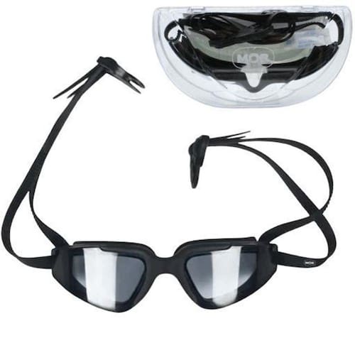 Características O Óculos de Natação Antiembaçante Profissional da Mor possui lentes em policarbonato, silicone macio ao redor das lentes, tira regulável em silicone, botão de abertura em policarbonato, estojo em polipropileno e protetor auricular em PVC. Disponível em preto, o óculos garante proteção e visibilidade durante seu mergulho