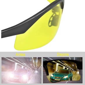Os verdadeiros óculos de ciclismo, moto e direção com lentes para visão noturna trabalhamos apenas com matéria-prima de , ou seja, a qualidade, acabamento e durabilidade deste produto são sem sombra de dúvidas incomparáveis com itens similares da concorrência que ficam disparadamente para trás. Obtenha proteção e visão ampliada quando estiver com a sua bike à noite, as lentes noturnas proporcionam uma visão mais clara do ambiente, ao mesmo tempo que amenizam ofuscações de faróis altos de outros veículos vindos da direção contrária. Os óculos são leves, modernos, confortáveis, encaixam bem no rosto e proporcionam ótima visibilidade. Excelentes para a prática de esportes. O ajuste de inclinação das hastes fazem com que eles se adaptem a qualquer formato de cabeça, proporcionando aderência e segurança para as suas pedaladas, pliotagem de moto e direção noturna no seu carro