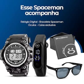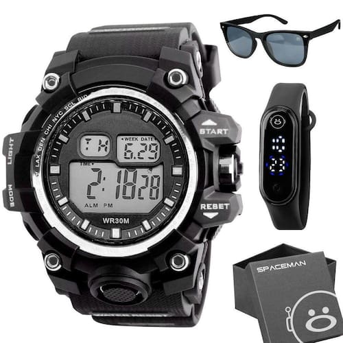 Oculos proteção uv + relogio digital prova dagua + caixa presente cronometro grande data esportivo Kit Acessórios Estilosos Orizom Spaceman - Relógio Digital + Óculos de Sol + Caixa Premium