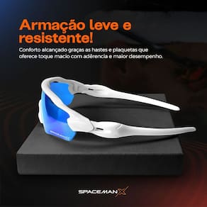 Óculos Esportivo de Ciclismo Orizom Spaceman X RadarProteja seus olhos e eleve sua performance com o incrível Óculos Esportivo Orizom Spaceman X Radar. Desenvolvido para atletas e aventureiros que exigem o melhor em proteção visual, conforto absoluto e um visual imbatível. Este não é apenas um acessório, é um equipamento essencial para quem leva a sério suas atividades ao ar livre.Com um design moderno e uma estrutura robusta, o Spaceman X Radar combina alta tecnologia em lentes com um encaixe ergonômico que garante segurança e conforto, mesmo nos percursos mais desafiadores.Destaques do Produto:- Marca: Orizom- Modelo: Spaceman X Radar- Proteção UV400 para garantir mais segurança e saúde visual em qualquer clima- Lentes em policarbonato de alta resistência para maior durabilidade e excelente campo de visão- Armação ultraleve, flexível e resistente para conforto mesmo em longas horas de uso- Design esportivo e aerodinâmico para maximizar seu desempenho com estilo- Peso aproximado: 40gIdeal para uso em ciclismo, corrida, caminhadas e trilhas, esqui, pesca, motocross e outras atividades ao ar livre.Especificações Técnicas:- Largura interna entre as hastes: 14,6 a 15,6 cm- Largura da lente: 6,5 cm- Altura da lente: 4,5 cm- Largura da ponte do nariz: 2,5 cm- Comprimento das hastes: 12,5 cm- Largura total da moldura: 14,7 cmNão perca a oportunidade de garantir o seu Óculos Orizom Spaceman X Radar e sinta a diferença de um equipamento feito para quem está sempre em movimento. Estoque limitado. Compre já!