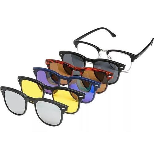 Com esse modelo, você terá a solução perfeita para quem usa óculos, pois a armação permite que você coloque lentes com o seu grau e ainda oferece mais 5 clip on com diferentes opções. É um modelo 6 em 1, onde cada clip on é preso por ímã magnético e trava central.