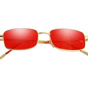 Óculos Sol Lente Vermelho Quadrado Retro Retangular Vintage
