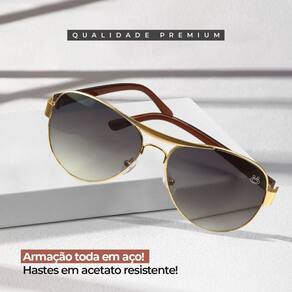 Óculos Sol Masculino Aço Inox Aviador Ouro Banhado Case