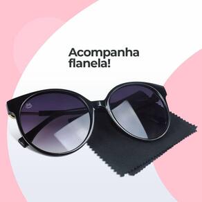 oculos sol proteção uv preto feminino vintage redondo + case exclusivo estiloso Maria - Preto - M