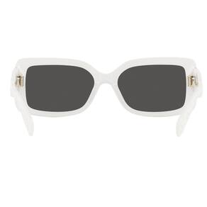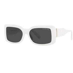 MK2165 310087 56 Branco com lentes sólidas cinza escuro. Tamanho: 56mm Ponte: 17mm Haste: 140mm Forma: Retângulo, Material: Plástico.