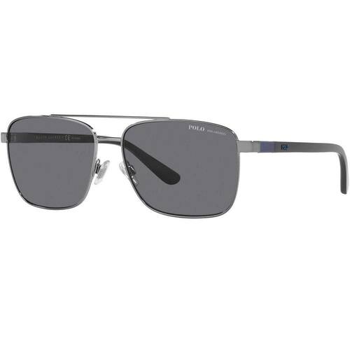 Referência: PH3137 Marca: Polo Ralph Lauren Gênero: Masculino Cor: Cinza Material: Metal Tamanho: 59 Ponte: 15 Altura: 44.6 Diagonal: 65.3 Comprimento das hastes: 145 Lentes or: Cinza Polarizada Material das Lentes: Plástico Curva Base: 6
