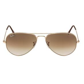 A Ray-Ban teve origem no ano de 1937 e se mantém há mais de 80 anos com estilos que nunca saem de moda e inspiração sem fim para a categoria de óculos de sol e óculos de grau. Pilotos, generais, praticantes de esportes ao ar livre, ciclistas e montanhistas usaram a marca, o que deu à ela o espírito de aventura. A Ray-Ban possui modelos com revestimentos espelhados e lentes com aprimoramento de cores, além de proteção UV 100% em todas as peças da marca. Dourado Lente Degradê Marrom Nome da marca Ray-Ban gravado nas hastes Nome da marca Ray-Ban gravado em laser na lente Tamanho G