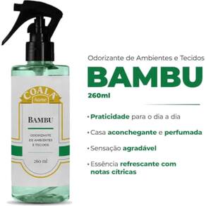 Odorizante De Ambientes E Tecidos 260ml Coala Bambu Aroma: Bambu Odorizante Coala Bambu 260ml. Aromatize ambientes e tecidos com praticidade. Fragrância suave, fresca e duradoura. Renove o ar da sua casa com praticidade e sofisticação. O Odorizante de Ambientes e Tecidos Coala Bambu oferece uma experiência olfativa leve e agradável, perfeita para o dia a dia. Com jato suave e aplicação rápida, este odorizante foi desenvolvido especialmente para perfumar ambientes e tecidos com eficiência, deixando uma fragrância suave que transmite conforto e bem-estar. Ideal para quem deseja praticidade e eficácia na hora de manter o lar com cheiro de limpeza e frescor. Benefícios do Odorizante Coala Bambu: Fragrância delicada, fresca e duradoura Pode ser aplicado em ambientes e tecidos Pronto para uso com spray de fácil aplicação Aroma de Bambu, leve e sofisticado Embalagem prática com 260ml Não mancha tecidos quando corretamente Ideal para uso diário Indicado para uso em: Quartos e salas Banheiros e lavabos Cortinas, sofás, tapetes Roupas e roupas de cama Escritórios e carros Modo de Usar: Agite antes de usar. Posicione o frasco na vertical e pressione o spray para cima. Aplique de 2 a 4 pulverizações no ambiente ou sobre o tecido desejado. Deixe o aroma se espalhar naturalmente. Evite aplicação direta em tecidos delicados ou de cores muito claras sem teste prévio. Informações Técnicas: Produto: Odorizante de Ambientes e Tecidos Fragrância: Bambu Volume: 260ml Marca: Coala Essências Aromáticas Embalagem: Spray com válvula Finalidade: Aromatizador de uso geral Categoria: Limpeza e perfumação Pode ser em tecidos Sim, é indicado para tecidos. Recomendamos testar em uma pequena área antes. É um aromatizador spray ou contínuo É spray com aplicação por pulverização manual. A fragrância é forte Não. É suave, ideal para quem busca um aroma agradável e não invasivo. Pode usar em carro Sim. É seguro para uso em estofados automotivos e no interior do carro. Marca: Não Informado Ean: 7907058629333