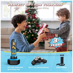 Presente Perfeito para Crianças: Esta bolsa de pancadas inflável azul da ODOSOLA mede aproximadamente 170 cm de altura e acompanha luvas de boxe e uma bomba manual para inflar. É o presente ideal para aniversários ou Natal para crianças a partir de 3 anos, especialmente para aquelas que gostam de artes marciais como caratê e taekwondo.