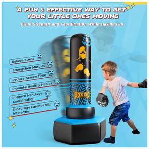 Base Estável com Retorno Rápido: A base reforçada suporta até 110 kg de areia ou 68 kg de água, garantindo estabilidade durante o uso. Além disso, sua reação rápida ao impacto permite que a bolsa retorne imediatamente após cada soco, mantendo as crianças engajadas e em movimento.