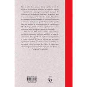Para o autor desta obra, o haicai constitui a arte de registrar, em linguagem despojada, as sensações fugazes – especialmente aquelas provocadas pela passagem do tempo e pela sucessão das estações – bem como suas ressonâncias na memória cultural e afetiva. Vinculados à tradição que remonta a Bashô, os textos que compõem este volume revelam suas qualidades mais sutis quando lidos em japonês, na primorosa tradução realizada por Masuda Goga, grande estudioso e praticante do haicai tradicional, tanto em japonês quanto em português. Publicada em 2007, Oeste constitui uma antologia dos haicais compostos por Paulo Franchetti ao longo de quinze anos. Esta segunda edição preserva integralmente o corpo principal da obra e oferece um acréscimo significativo: ao final do volume, o leitor encontrará, em português, o texto completo dos diários de viagem que deram origem às seções “No Campo, no Ano-Novo” e “Viagem à Terra Natal”. Edição Bilíngue: japonês / português