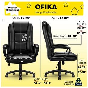 Atualize o encosto alto para aliviar a fadiga De acordo com o design ergonômico de atualização das vértebras cervicais, nossa cadeira de mesa reduzirá a dor nas costas e nas vértebras quando você estiver trabalhando por muito tempo, o encosto alto acolchoado segmentado e o assento com ultra amortecimento proporcionam extremo conforto experiência, esta cadeira de escritório ergonômica é a melhor escolha de periartrite do ombro. Cadeira executiva de couro de segurança A cadeira de escritório de couro embala seu corpo com couro macio e uma almofada de assento de espuma acolchoada dupla, capacidade de peso de 180 kg, apoio de braço acolchoado para uma aparência sofisticada e conforto máximo que você pode afundar nela, esta cadeira executiva melhorará sua eficiência no trabalho, trabalho e descanso andam juntos. Altura ajustável com apoio de braço Esta cadeira tem uma distância entre eixos de nylon resistente, 4 polegadas de altura ajustável e rodas rolantes de 360 em nossa cadeira de escritório em casa são flexíveis e adequadas para o ambiente do seu escritório. A função de inclinação com trava de posição e ajuste traseiro de 110, SEGURA E CONFORTO, estão prontas para o descanso do seu escritório, perfeitas para casa, escritório e mesa do chefe Fácil de configurar Vem com todo o hardware e ferramentas necessárias, esta cadeira de mesa para computador é fácil e rápida de montar de acordo com as instruções da embalagem, são necessários apenas 10 a 15 minutos para concluir todo o processo de instalação Marca: Não Informado