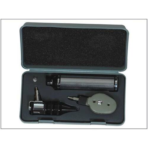 Este modelo possui cabo em metal para duas pilhas médias tipo C de 1,5 volts, garantindo energia suficiente para realizar os exames de forma eficiente. Além disso, acompanha o estojo para transporte, facilitando o seu transporte e armazenamento.