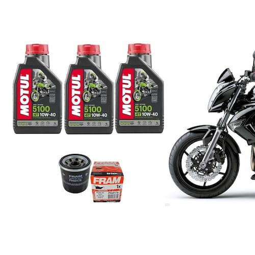 3L Oleo Motul 5100 10W40 + Filtro De Oleo Fram Ph6017 Fotos ilustrativas Acompanha Marca/modelo/aplicação: Conforme ficha técnica do anuncio Recomendamos a instalação em oficina mecânica especializada Itens inclusos: 03 Litros De Oleo - 01 Filtro De Oleo Aplicação: Kawasaki Er6n - Kawasaki Ninja - Kawasaki Versys Para Os Anos: Motos Que Utilizem Fram Ph 6017 - 10w40 4 Tempos - Semissintetico - Api SL Marca: Filtro Fram - Oleo Motul Medida: 3 Litros Modelo: Ph 6017a - 5100 Semissintetico Api Sl 10w40 4 Tempos Lembre-se de sempre seguir o manual do proprietário, pois o intervalo de troca deve ser estipulado de acordo com as recomendações do fabricante e com o ajuste em função das condições de uso da motocicleta. Imagem Meramente Ilustrativa Marca: Não Informado