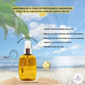 O óleo protetor capilar solar deixará seus cabelos mais fáceis de pentear e sem frizz.
