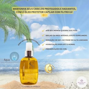 O óleo protetor capilar solar deixará seus cabelos mais fáceis de pentear e sem frizz.
